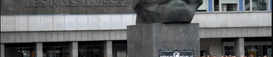 Chemnitz was formerly known as Karl-Marx-Stadt during the GDR, its most distinguishing feature is a huge bust of the revolutionary philosopher in the main square. Behind Marx’s massive head “Workers of the world, unite!” is written in German, Russian and French. In front stand the far right crowds with banners reading “Ausländer raus!” (Foreigners out!)