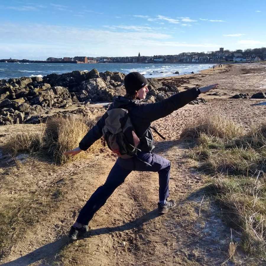 A bitterly cold but beautiful day. Charles shared his body warmer and part of his lunch with me. We walked the length of the beach and completed a loop by getting the bus back from Gullane.
