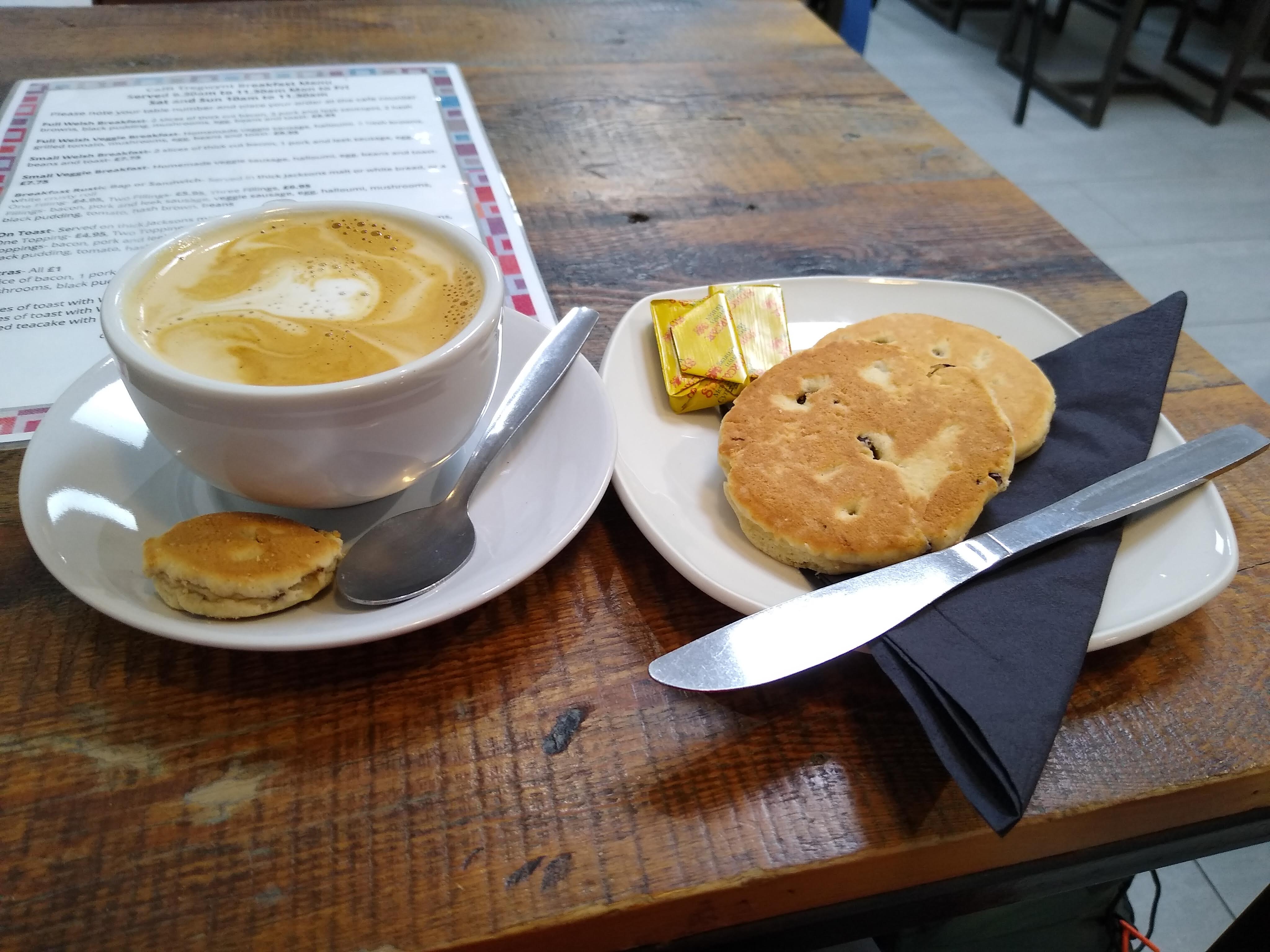 At Melin Tregwynt, which is a historic mill with a visitor centre, there is a café where I had my first encounter with Welsh cuisine in Wales – Welsh cakes. They are basically a flat scone/pancake combination enjoyed with generously spread butter. I had a portion of two plus a mini one gratis that came with my flat white.